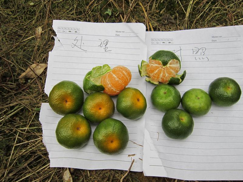 下图左:施用志信叶面肥的蜜桔,成熟早,色泽好,皮薄,口感甜