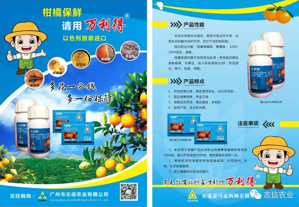 1、万利得是用于柑橘采后保鲜的杀菌剂。安道麦公司生产,以色列原装进口。