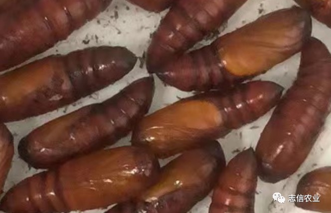 草地贪夜蛾的蛹呈棕红色,羽化前呈棕褐色。通常是入土化蛹,也可以在玉米繁殖器官部位如玉米穗上化蛹。如果土壤质地过硬,老熟幼虫也会在碎叶里或土表化蛹。夏季蛹期约8至9天,冬季可长达20-30天。