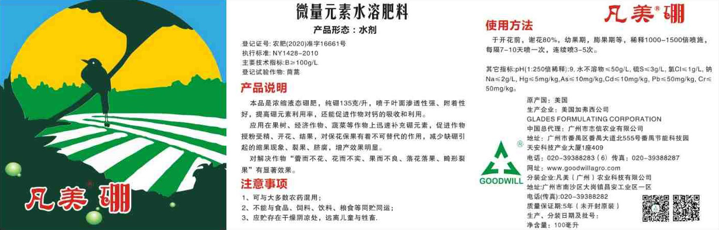 凡美硼微量元素水溶肥料是浓缩液态水溶硼肥,预防作物缺硼,同时促进作物对钙的吸收利用。迅速补充作物所需的硼元素,保花保果,增产效果明显。