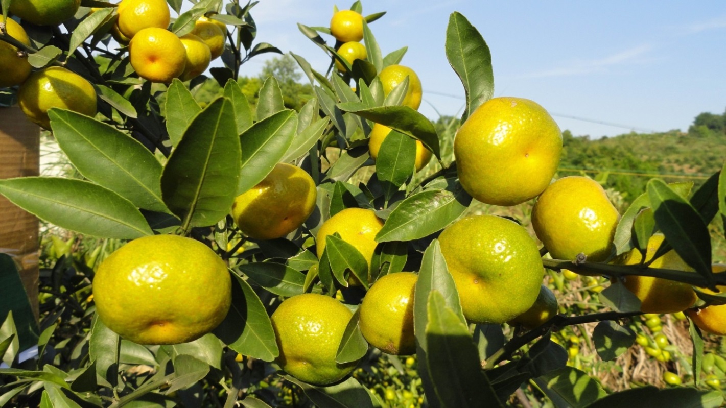 The right of the picture below: The tangerines that have been applied with Zhixin foliar fertilizer show more fruit, larger and mature than the control. Below left: Tangerine with Zhixin foliar fertilizer, mature early, good color, thin skin, sweet taste